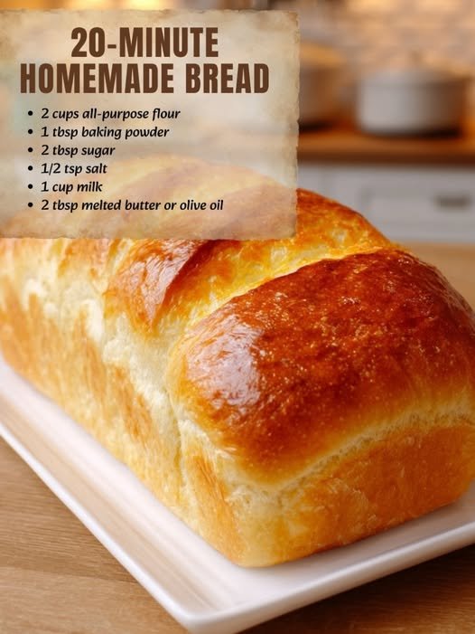 This 20-minute homemade bread is a game-changer for quick meals or unexpected guests. Its tender crumb, golden crust, and simple ingredients make it a comforting, versatile addition to your kitchen. No yeast, no waiting—just fresh, soft bread ready almost instantly.