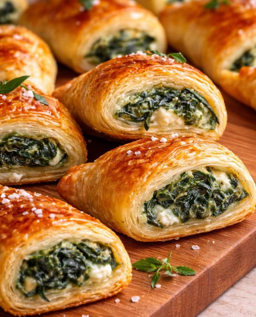 Spinach And Feta Cheese Puff Pastry Rolls Recipe