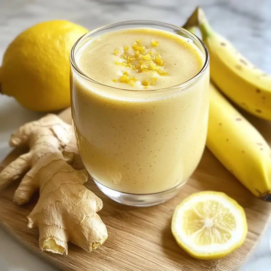 A healthy and refreshing smoothie made with banana, lemon and ginger, ideal for naturally energizing your day.