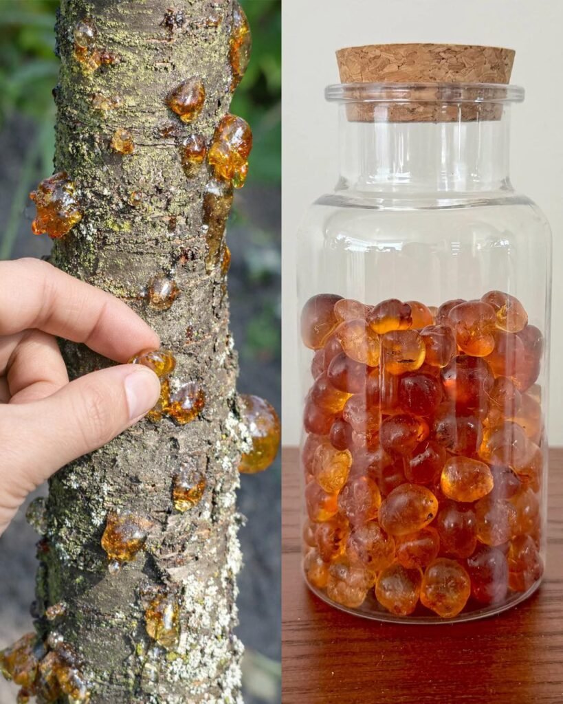 Peach tree resin, also known as Tao Jiao (桃胶) in Chinese, is a natural substance that comes from the bark of peach