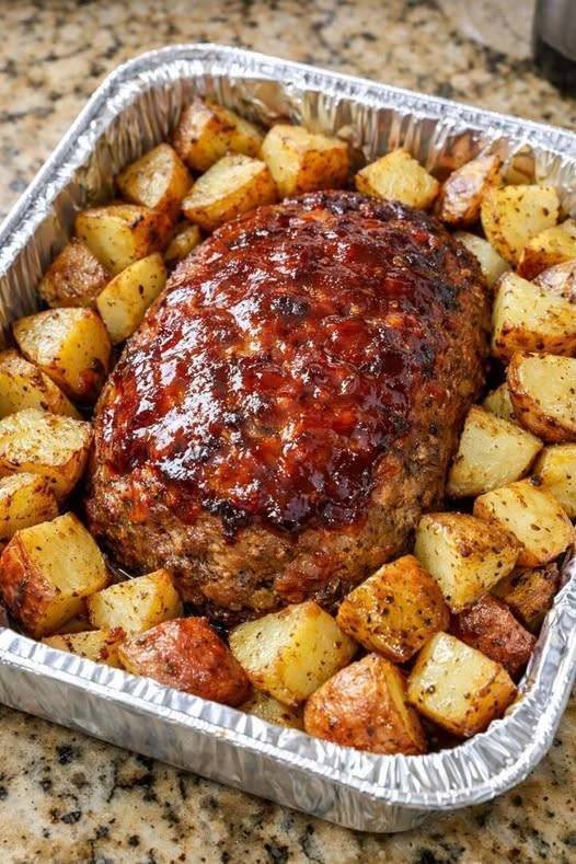Simple Oven-Baked Meatloaf and Potatoes This Simple Oven-Baked Meatloaf and Potatoes is a perfect one-pan dinner for hectic evenings. Cooking