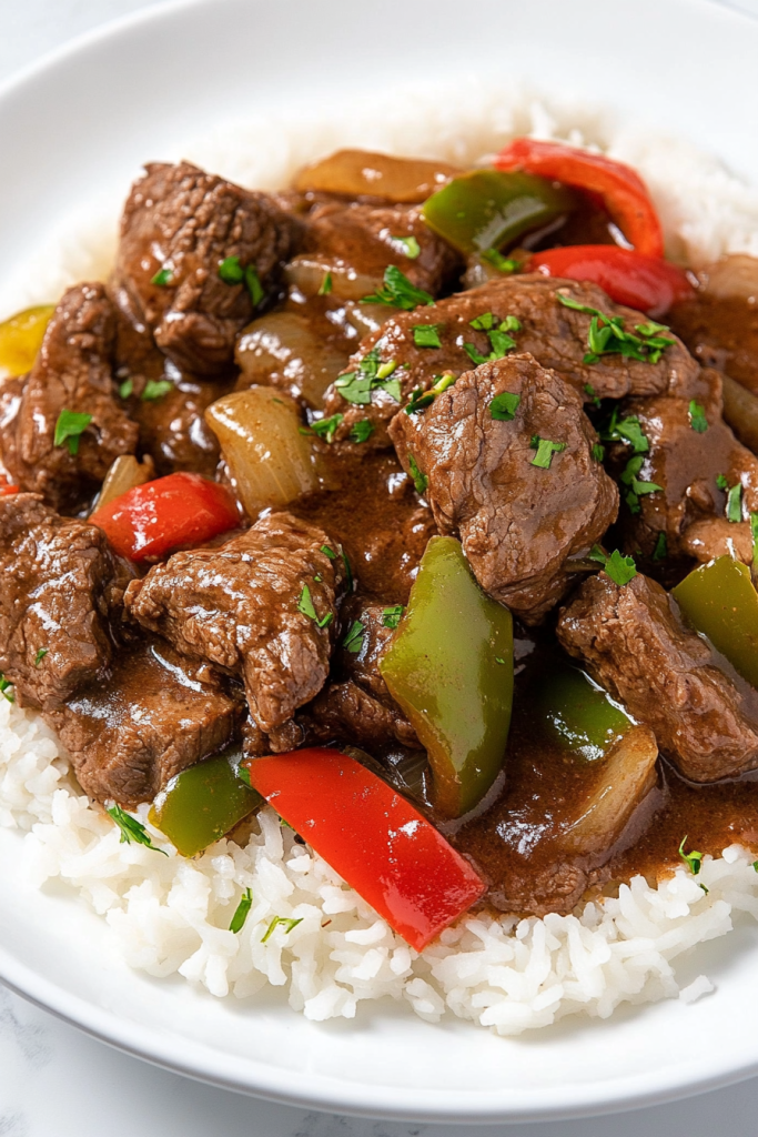 Prep Time: 15minutes minutes Cook Time: 4hours hours Servings: 6 Ingredients Beef & Seasoning: 2 pounds sirloin cut into 2-inch by ½-inch strips 2 teaspoons garlic powder ½ teaspoon kosher salt ½ teaspoon ground
