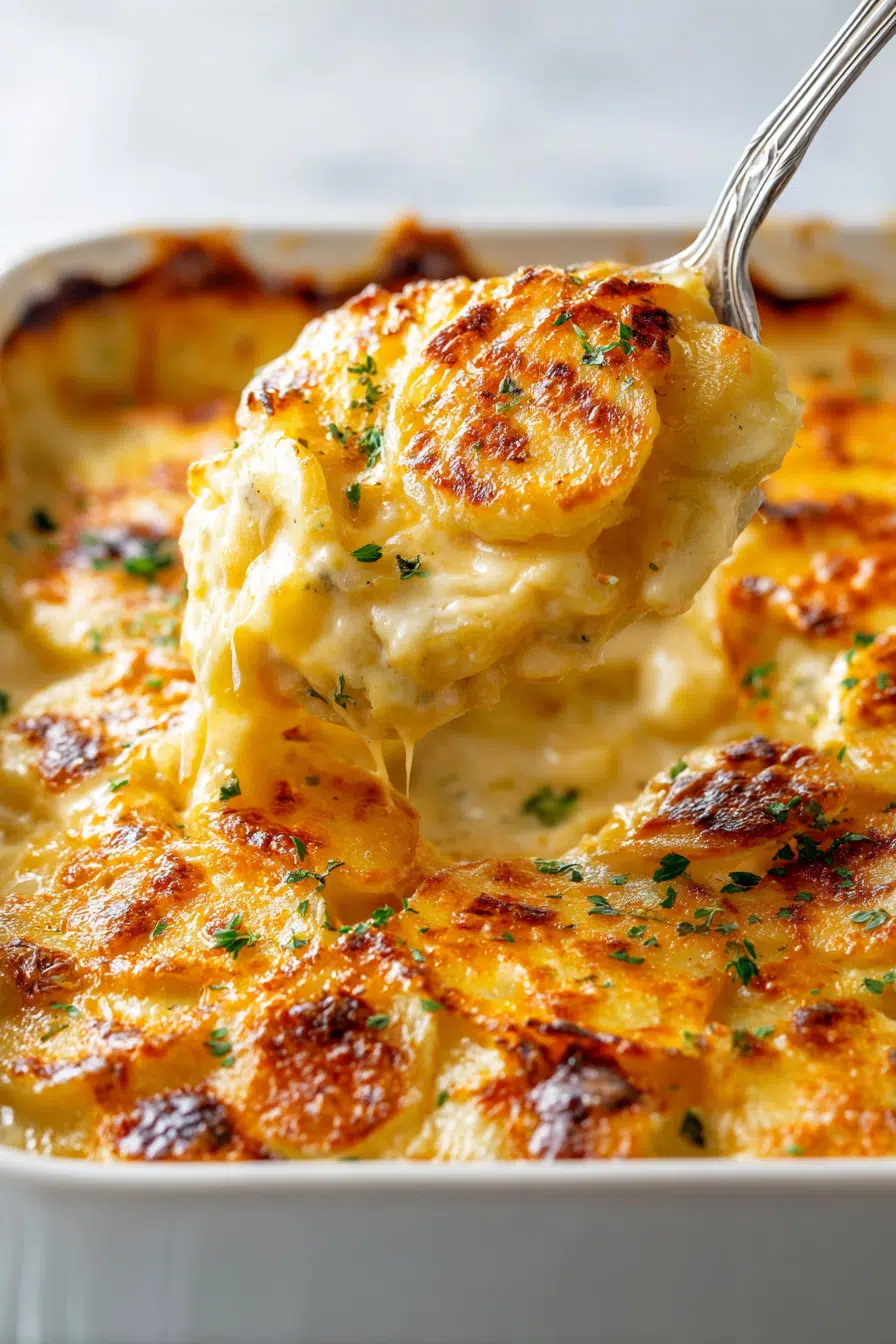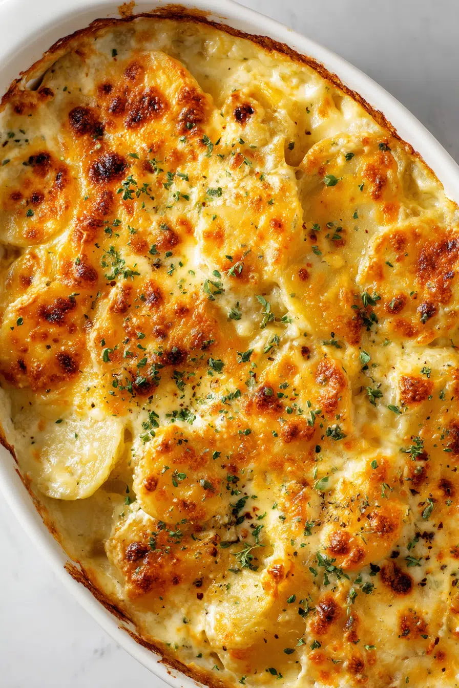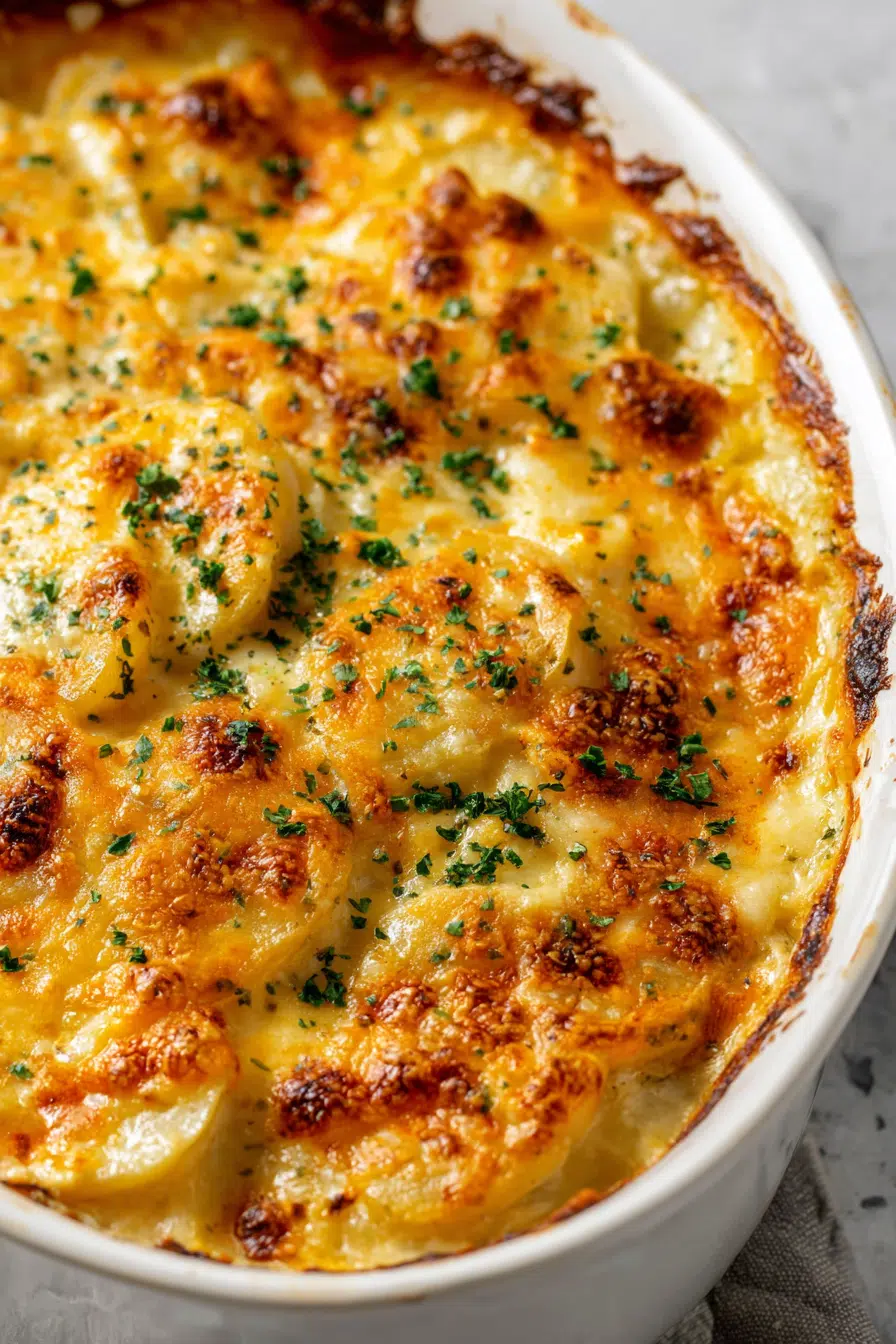 Every layer of potato is coated in a rich, velvety sauce that melts together with the cheese. The result is a comforting dish that feels indulgent without being complicated.