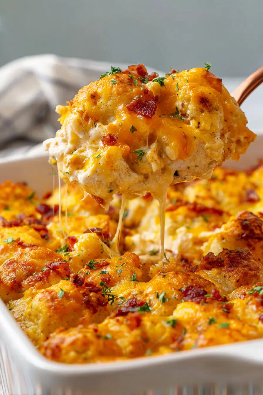 Ranch seasoning, smoky bacon, juicy chicken, and gooey cheese combine into one flavor-packed casserole.