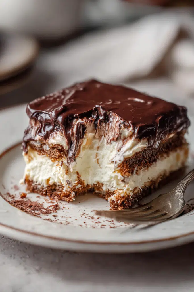 This Chocolate Eclair Cake is a rich, no-bake dessert layered with creamy vanilla pudding, crisp graham crackers, and a smooth chocolate frosting—an easy, crowd-pleasing treat that tastes just like a classic bakery éclair with half the effort.
