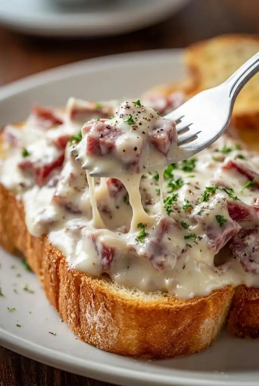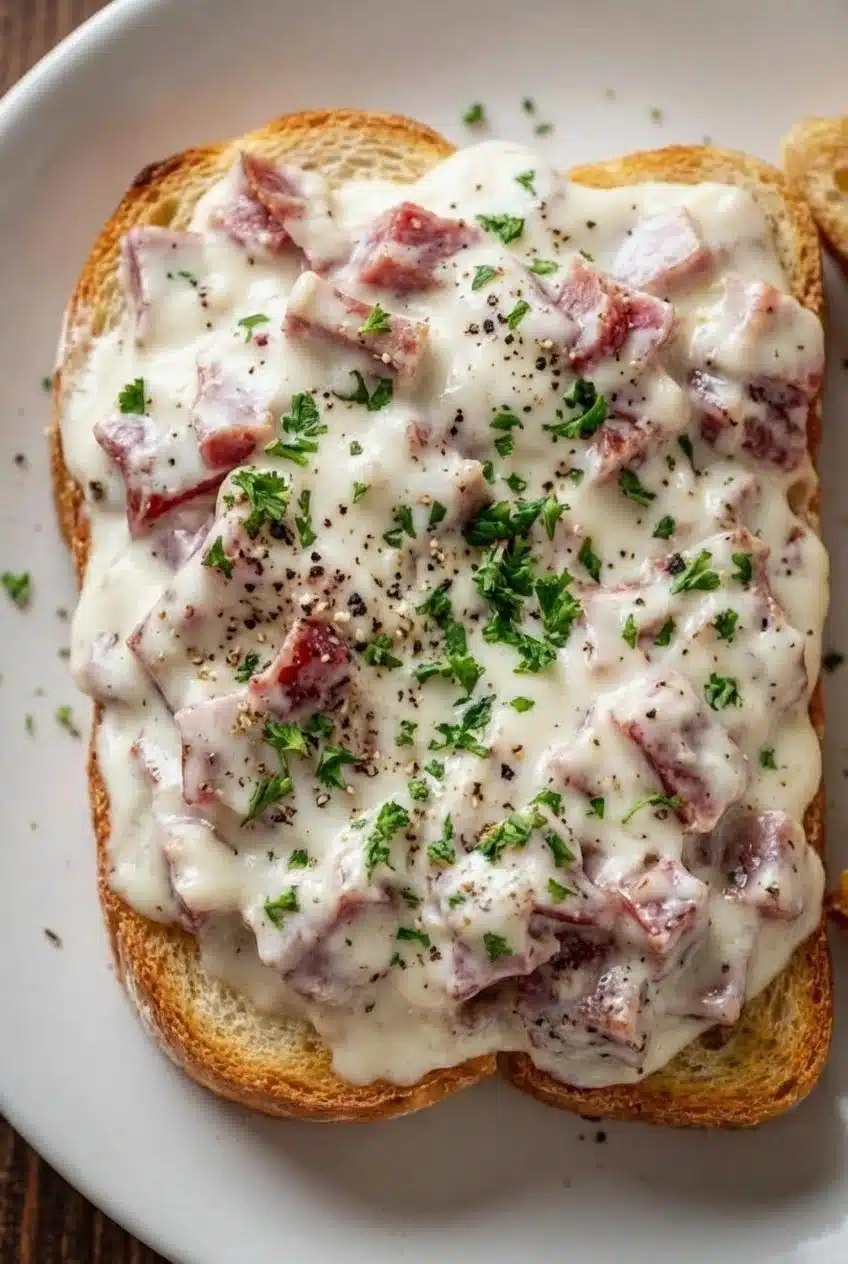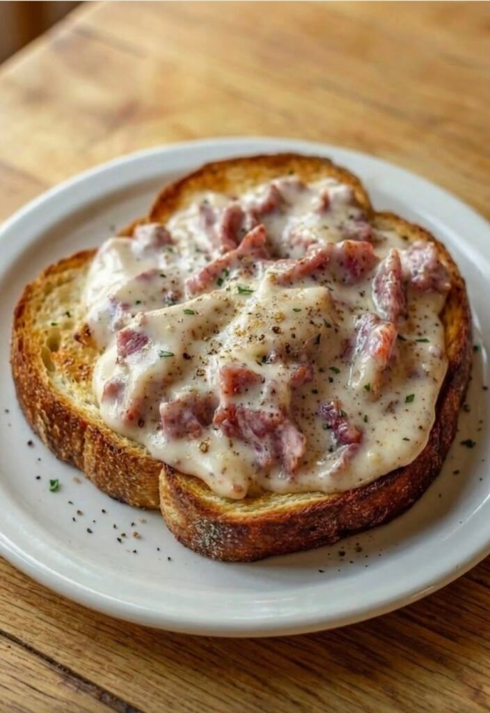 Back then, it wasn’t about Pinterest boards or food photography. It was about feeding the people you loved with something hot, filling, and comforting. The chipped beef would sizzle softly in butter, the milk would warm slowly, and that creamy white gravy would thicken like magic before my eyes. We poured it generously over crisp toast, and suddenly a simple pantry meal became something that felt special.