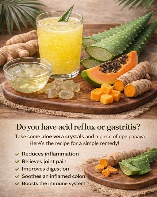 This juice may help support mild gastritis thanks to aloe vera and turmeric. However, ginger should be used in small amounts, since in some people it can increase burning sensations if the stomach is very sensitive.