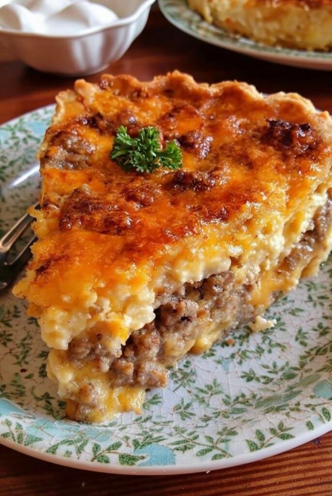 - Bake in the preheated oven until the top is golden and the crust is set, about 30-40 minutes. Let it cool for 10 minutes before slicing and serving.