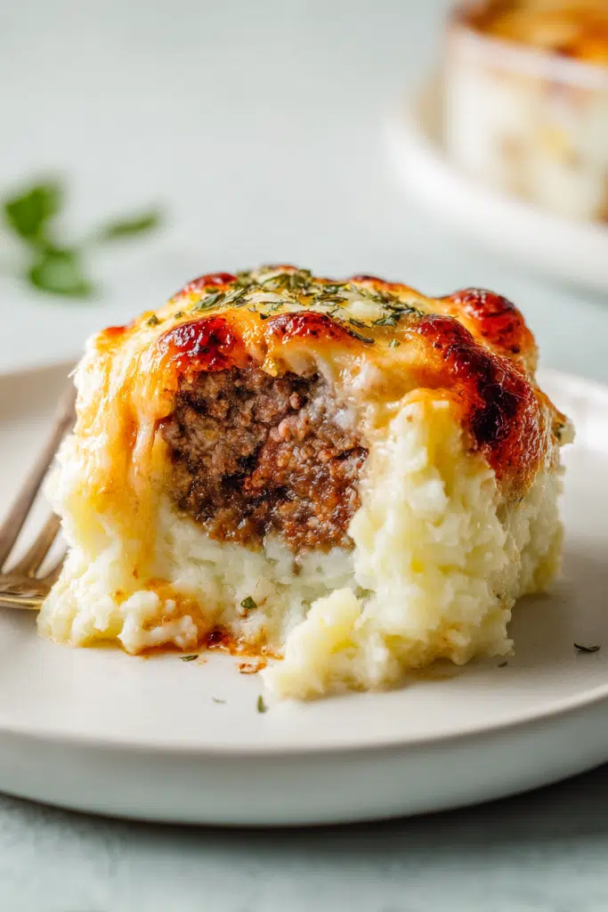 This Loaded Mashed Potato and Meatball Casserole is a rich, cozy comfort dish packed with hearty flavor! Creamy mashed potatoes are layered with juicy meatballs, melted cheese, and all your favorite loaded potato toppings for a warm, satisfying bake. Easy, filling, and perfect for family dinners or potlucks.