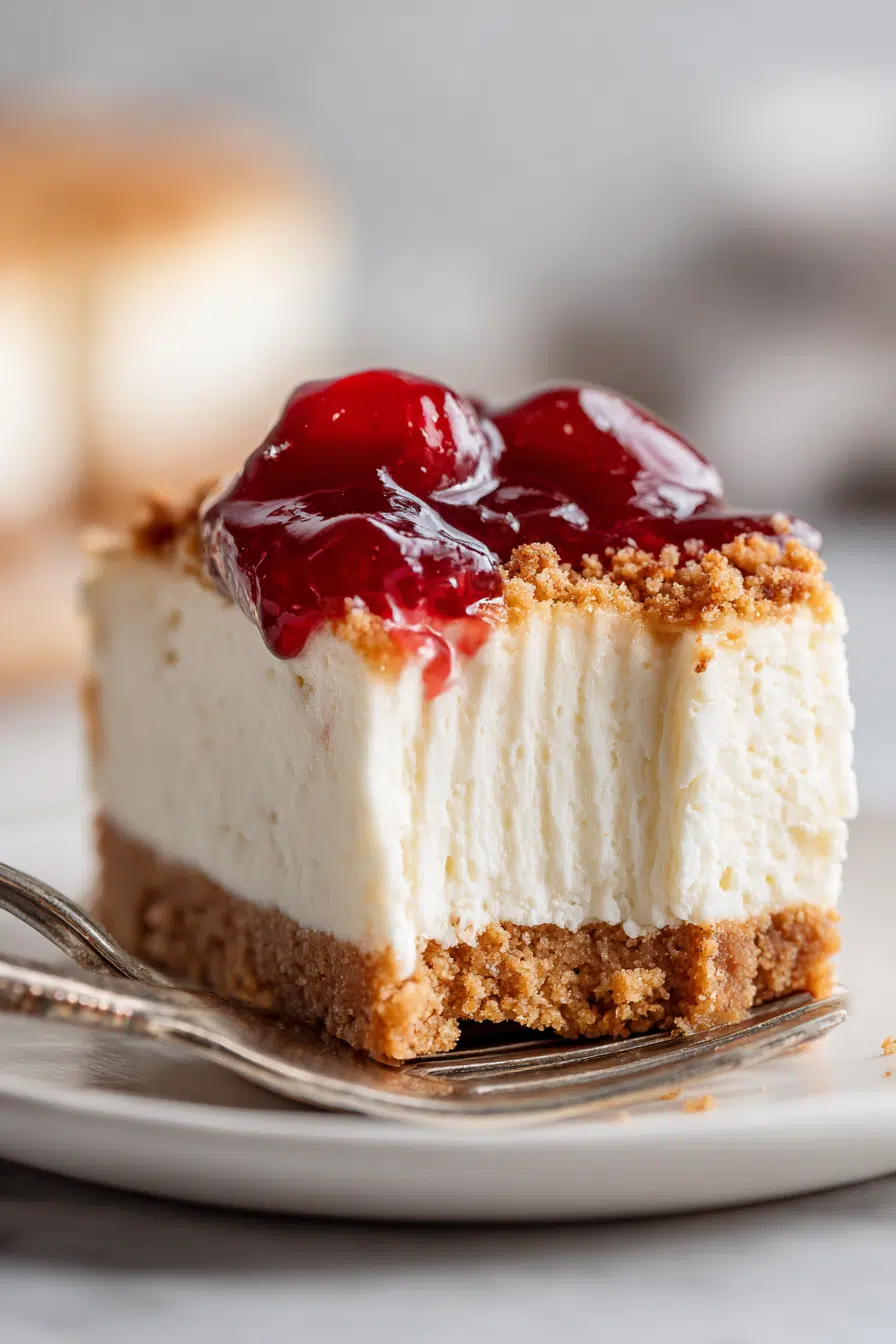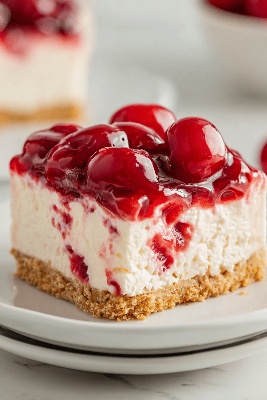 Growing up, my mom always kept a few simple desserts in her back pocket for busy days, unexpected guests, and those evenings when everyone just needed something sweet after dinner. We didn’t always have time to turn on the oven, especially during warm weather, but there was almost always a chilled, creamy cheesecake waiting in the fridge. The bright red cherry topping made it feel special, even when the rest of the day was completely ordinary.