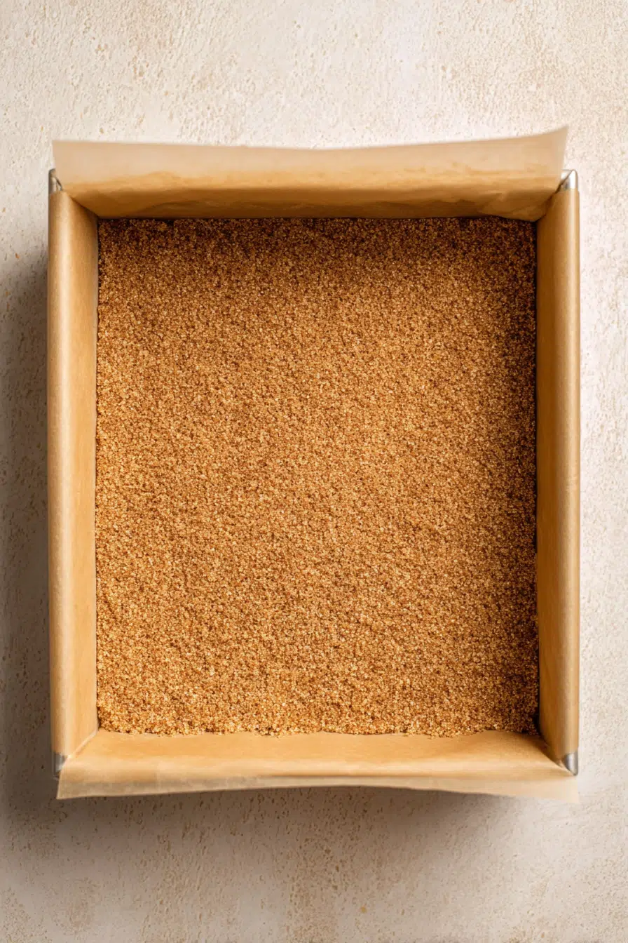 In a medium bowl, mix graham cracker crumbs with melted butter until the texture resembles wet sand. When you press a handful together, it should hold its shape easily.