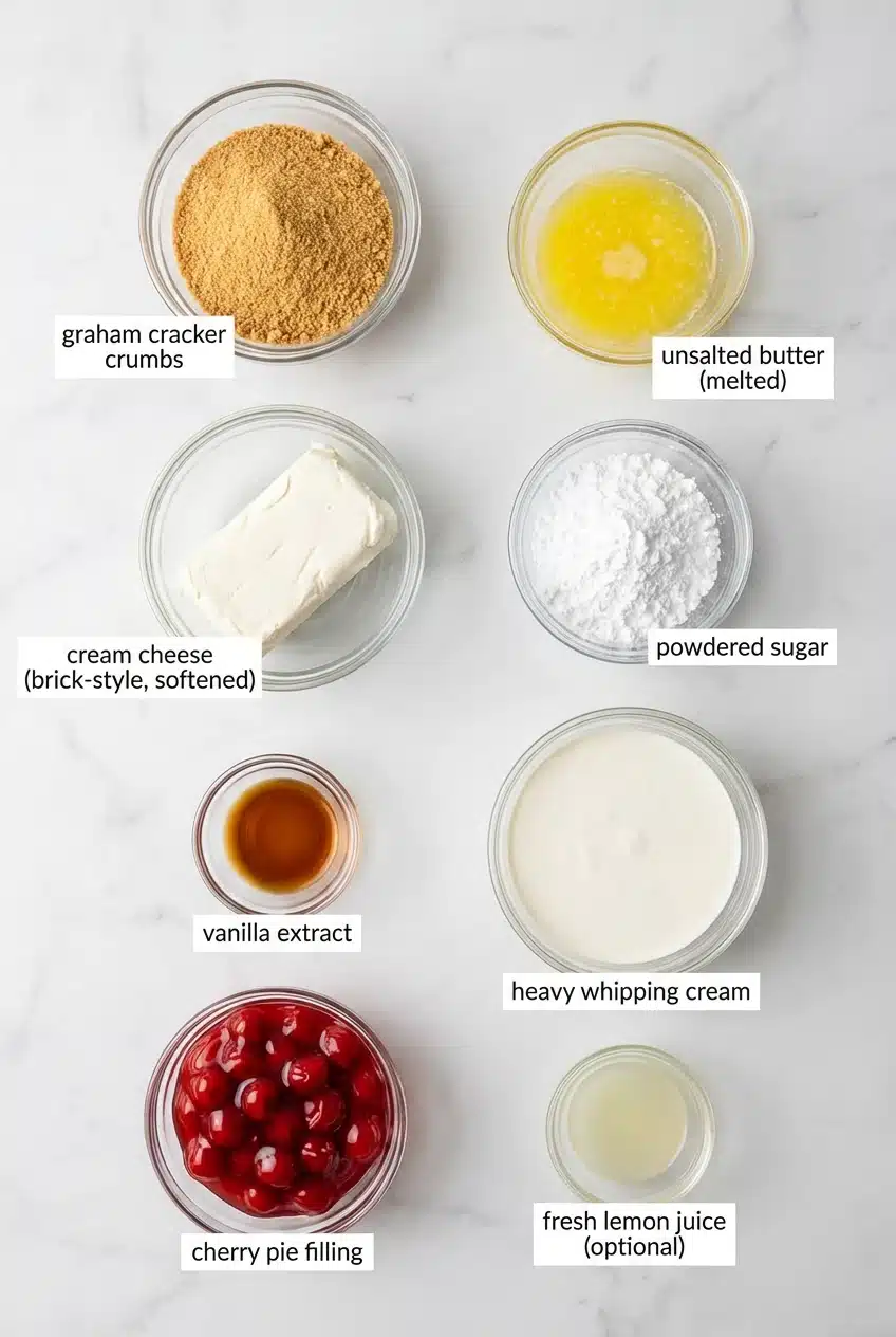 Use full-fat, brick-style cream cheese for the best texture. Softened cream cheese blends smoothly and prevents lumps. Avoid whipped tubs—they don’t set well for No Bake Cherry Cheesecake.