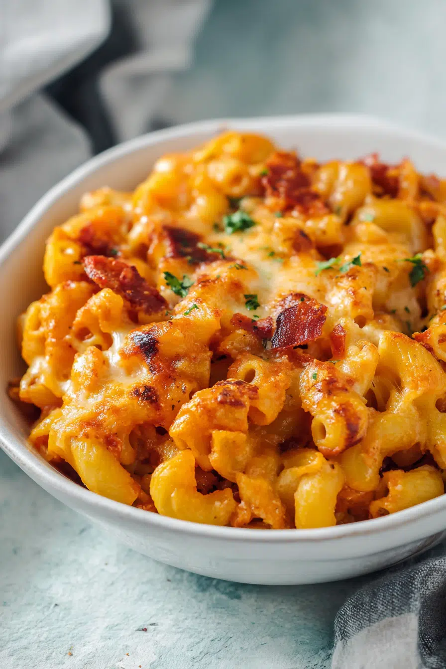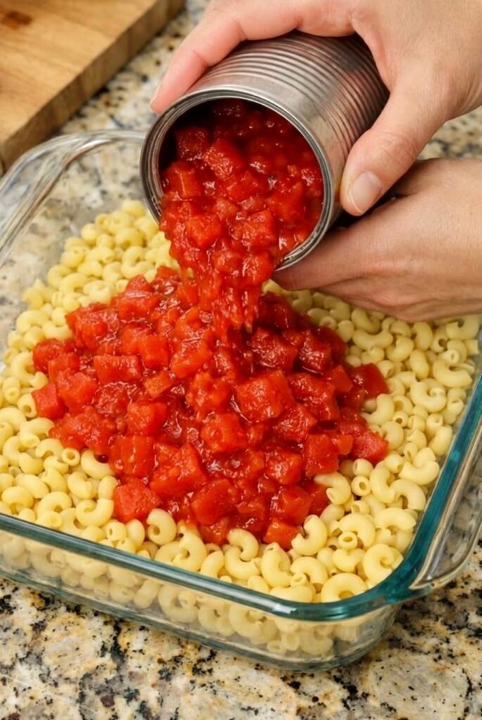 This is the kind of recipe that doesn’t rely on fancy ingredients or complicated techniques. Instead, it celebrates humble pantry staples — tender macaroni, rich tomato sauce, and plenty of melted cheese. When baked together, they transform into a dish that feels nostalgic, hearty, and deeply satisfying.