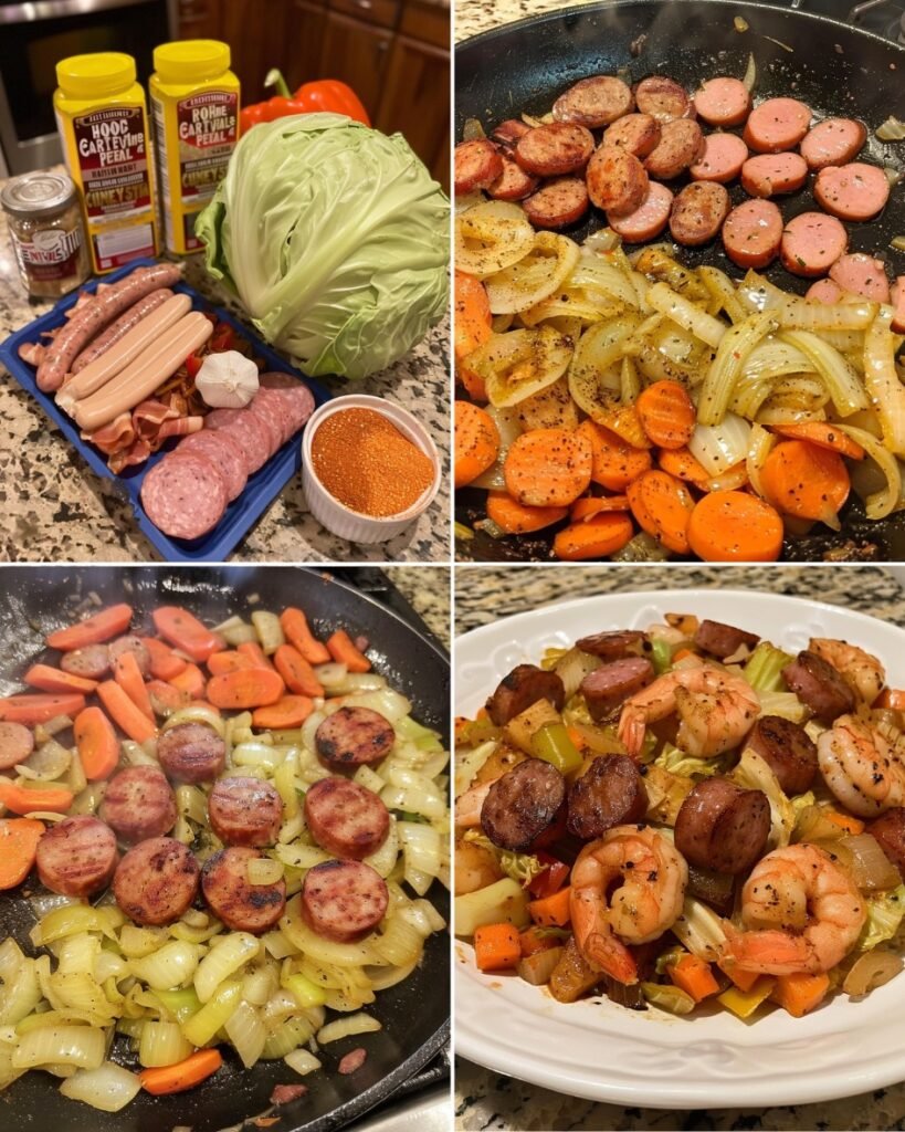 This is one of those meals that looks humble but hits all the comfort notes. Savory sausage, sweet shrimp, and tender cabbage come together in one pan, making it filling without being heavy.