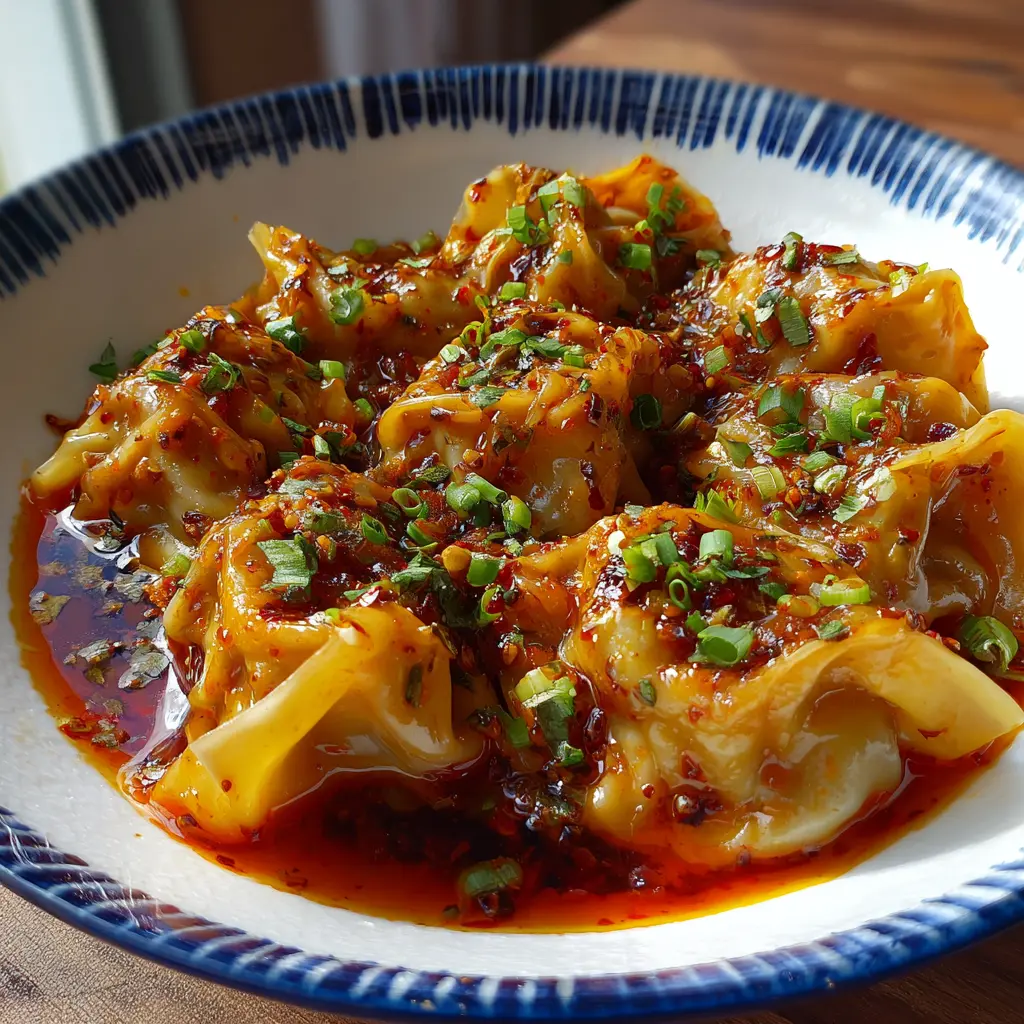 A delicious recipe for chicken wontons served in a spicy chili sauce, perfect for impressing your guests. Total Time: 35 minutes