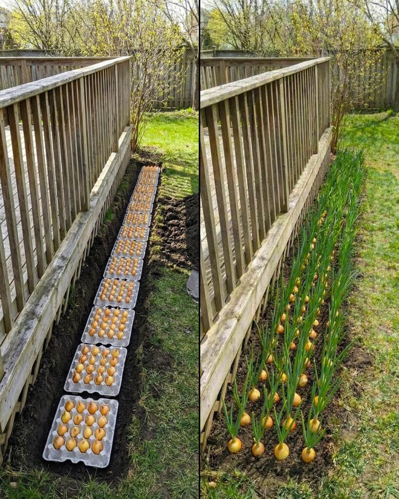 Using paper egg carton flats as a planting “grid” is a slick way to space onion sets evenly, keep weeds down, and get a tidy bed like the one in your photos. The cartons act like a biodegradable mulch and spacer—then break down as the onions grow.
