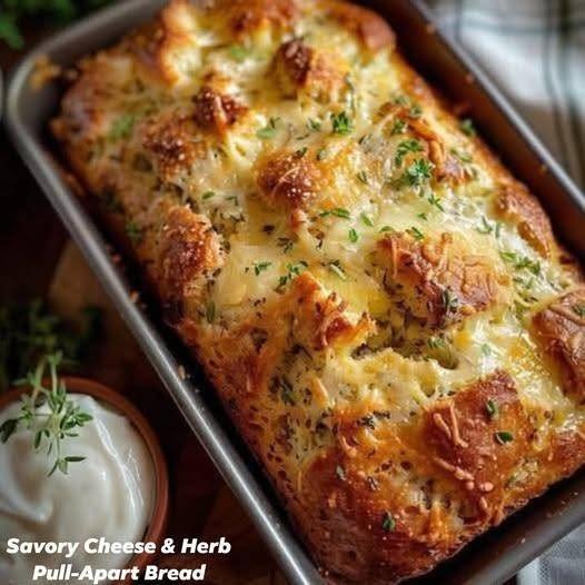 Savory Cheese & Herb Pull-Apart Bread is a warm, buttery, crowd-pleasing appetizer made from a crusty loaf sliced in a crosshatch pattern, filled with garlic herb butter and generous amounts of melted cheese. As it bakes, the cheese melts deep into the crevices while the crust turns golden and crisp. Each piece pulls apart easily, making it perfect for sharing at gatherings, holidays, or cozy family dinners.