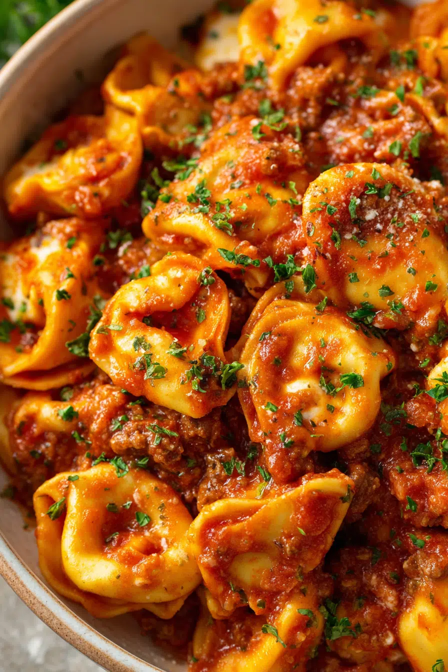 The sauce turns rich and velvety, coating every bite of tortellini beautifully.