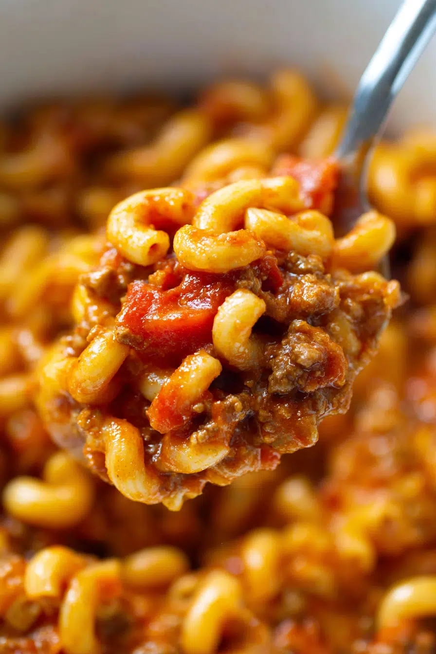 I love using the slow cooker for this dish— it even handles the pasta, eliminating the need to boil water and deal with extra cleanup. Check out my tips below to ensure your pasta comes out perfectly. This Crockpot Goulash is the epitome of comfort food! It features ground beef, vegetables, tomatoes, and savory seasonings, all slow-cooked to perfection. Even the elbow macaroni cooks right in the crockpot, making this one of the simplest slow cooker recipes you can find! On a chilly winter day, there’s nothing more satisfying than a bowl of this crockpot goulash. It’s the ideal mix of stew and pasta dish, with a rich tomato base and perfectly tender pasta—it’s truly the best of both worlds!