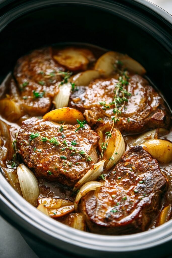 This Slow Cooker Pork Chops with Apples is a cozy, hands-off dinner made with tender pork chops, sweet apples, and warm savory flavors. Everything cooks low and slow for a comforting, family-friendly meal that’s perfect for busy weeknights or lazy weekends.