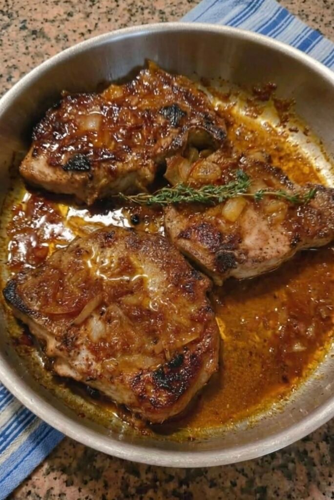Heat butter or olive oil in a skillet over medium heat. Sear each pork chop for 1–2 minutes per side until lightly golden. This step enhances flavor and gives the meat a deeper, richer taste.