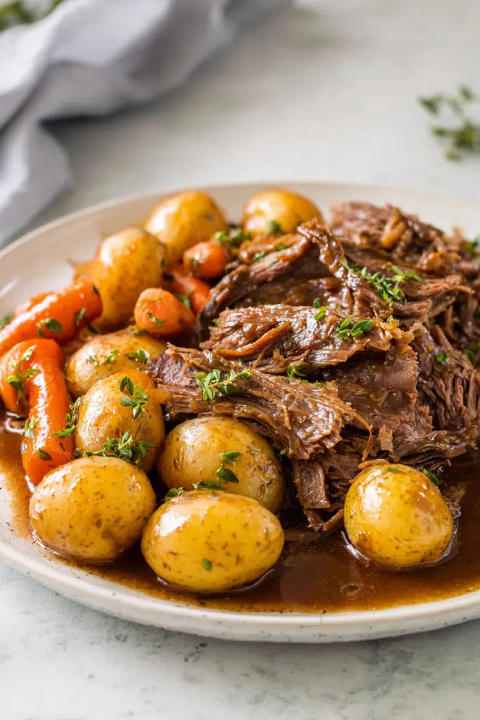 This Slow Cooker Pot Roast is tender, juicy, and packed with rich, comforting flavor! Slow-cooked with potatoes, carrots, and onions in a savory gravy, it turns into a melt-in-your-mouth meal with hardly any effort. Cozy, hearty, and perfect for busy days when you want a classic, satisfying dinner.