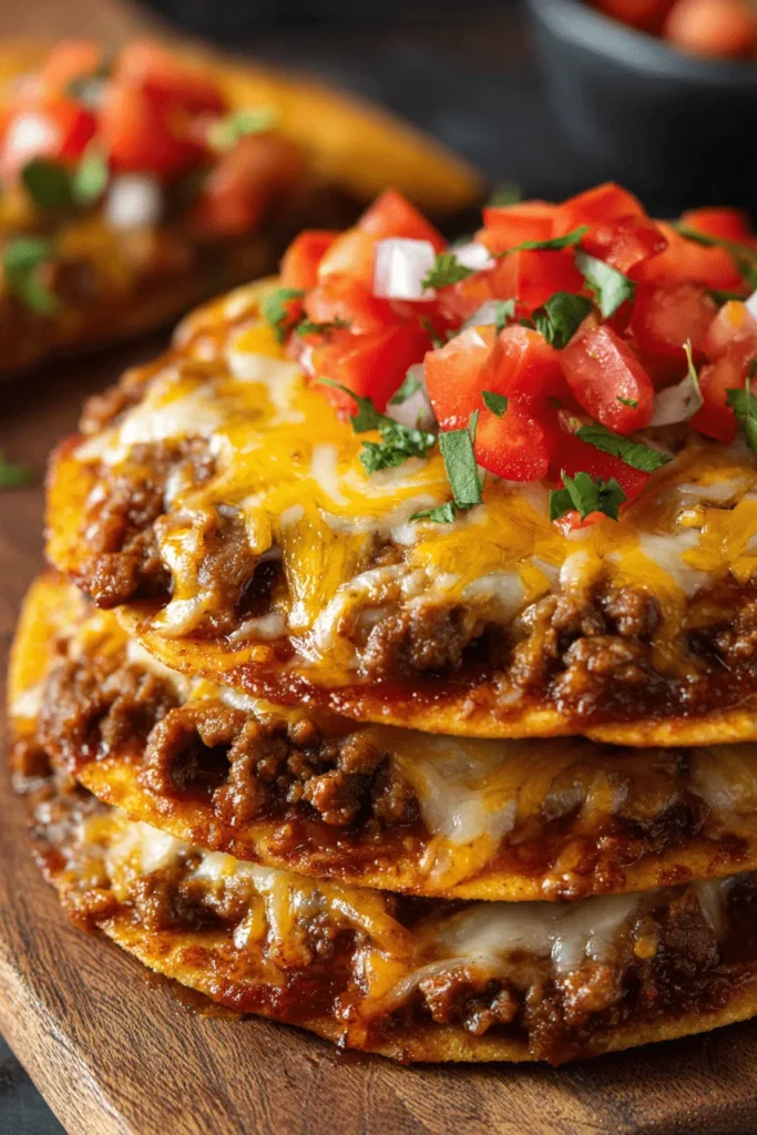 This Taco Bell Mexican Pizza is a homemade take on the fast-food favorite—crispy tortillas layered with seasoned beef, refried beans, zesty sauce, and melted cheese, then topped with fresh tomatoes. A fun and flavorful dinner the whole family will love!